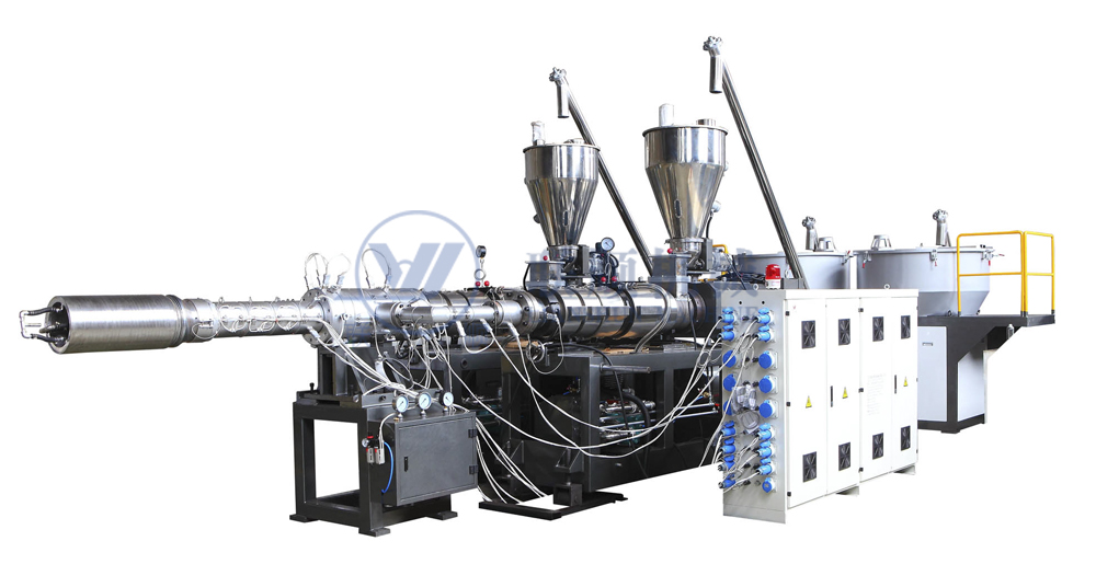 1.該擠出生產(chǎn)線配置兩臺擠出機(jī),雙層共擠,擠出物料穩(wěn)定,塑化優(yōu)良。